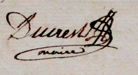 "Le sous-préfet du 2e arrondissement, vu l'ordonnance du roi du 7 juillet dernier, qui fait reprendre à l'instant le service aux fonctionnaires administratifs qui l'étaient au premier mars, arrête que Ducrest Nicolas et Tournier Jean-Roland, reprennent leurs fonctions de maire et adjoint, tandis que Seigne-Martin Jean-François et Bornet Antoine, maire et adjoint actuellement en exercice cesseront à l'instant leurs fonctions". Signé "Ducret, maire royal" [RD07, f° 69v (11/08/1815)].