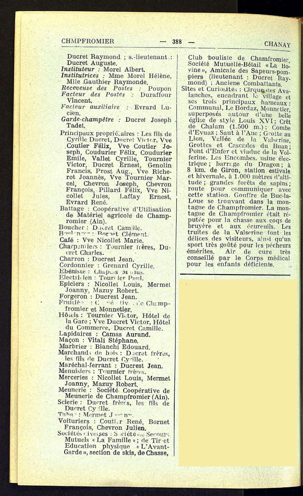 Source : AD01, Annuaire Fournier (Pages 387-388)