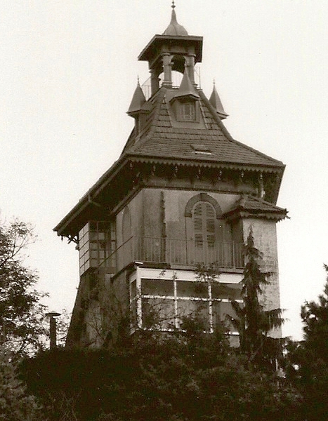 Le pavillon "sur le caillou" (et dont la base n'est ni carrée ni rectangulaire mais trapézoïdale) fut construit en 1905/1906, puisqu'il fut fiscalement imposé à partir de 1907 (avec toujours une année d'exonération). Quelques cartes postales confirment qu'il n'était pas encore édifié entre les 2 et 3 septembre 1903 (CP 66, vue générale), et le 29 juillet 1910 (commande sur fond de carte postale), où il est visible.