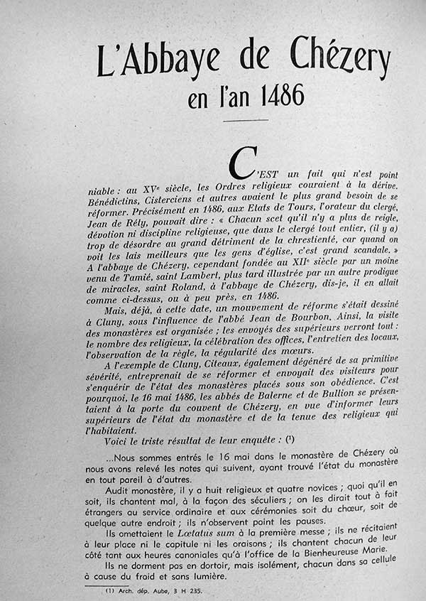 La revue Visage de l’Ain (t. 38 de 1957, pp. 24-25), publie un article de deux pages titré L'Abbaye de Chézery en l'an 1486, sous la plume de l’abbé Gabriel Renaud. Il s'agit du rapport de la visite de l'abbaye en 1486. Notons que la traduction comporte des imprécisions, pour avoir été réalisée à partir d'un original en latin de lecture très difficile.