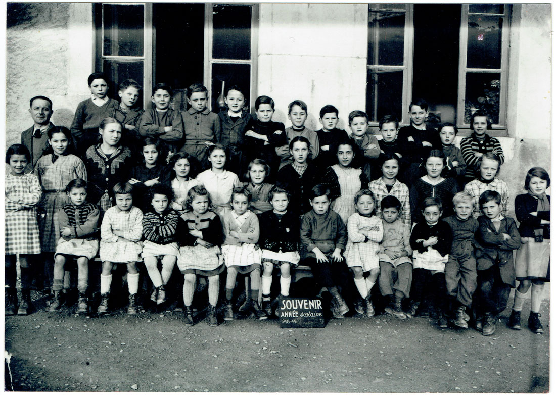 Publication : Ghislain Lancel. Remerciements : Marcelle Ducret-Butte, épouse Fourcault (Photo), Mme Simone Avet (noms), Mme Hélène Chevron (nom de l'instituteur, noms 31 et 33, prénoms 4 et 6 et confirmation de noms), Gilbert Blanc (noms 7, 12), Mme Michèle Vanel, née Camas (noms 1, 2, 8, 9, 11, 15, 19, 25, 28, 34, 35, 37, prénoms 13, 14, 16, et absents), Daniel Ducret (noms 17, 32, prénoms 26), Marcelle Ducret-Butte (noms 26 et 32).
