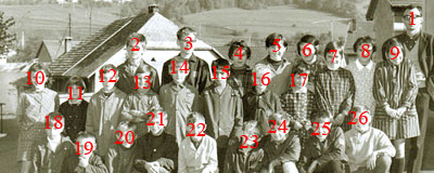 7) Ghislaine ALCARAZ ; 8) Nicole DUCRET (Décédée) ; 9) ... ACETO (famille de Portugais, de 4 ou 5 enfants, ayant vécu à Monnetier un an ou deux) ;