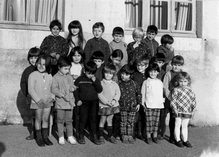 Cette photographie est celle des écoliers de la classe des petits de Mme Annie Peysson, institutrice à Champfromier, en poste double avec M. Pierre Roncin, son époux.