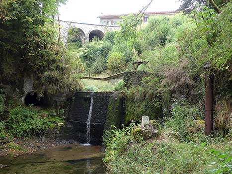 Le barrage de l'ancien moulin communal a été construit vers 1910 par l'entreprise Hanrioud de St-Germain-de-Joux. Une borne aux initiales R.H., placée en aval du barrage, de nos jours sur un rocher, rappelle les travaux.