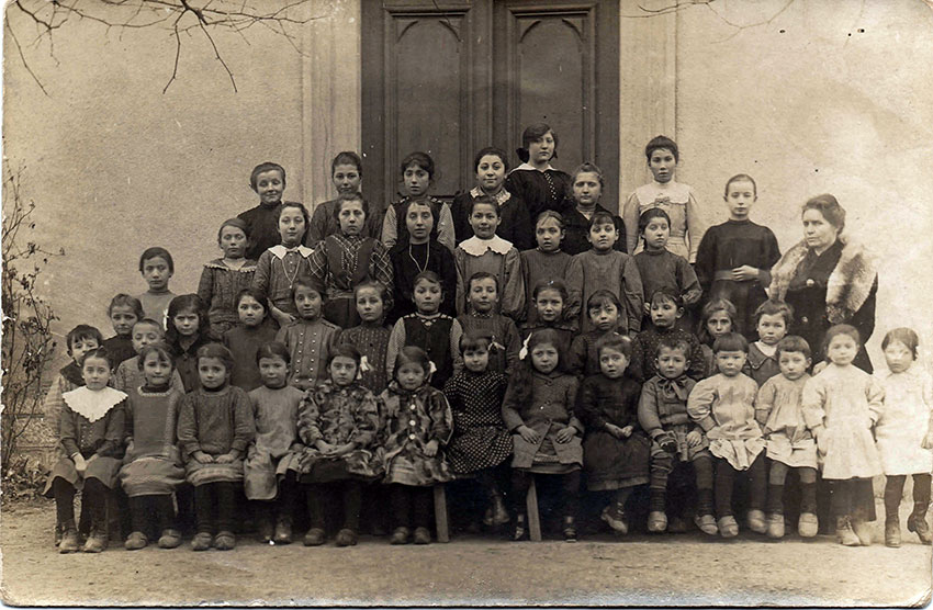 Les classes n'étaient pas mixtes. Sur la photo on ne voit que des garçons. Mais où donc les filles - celles bénéficiant d'une instruction, allaient-elles à l’école ? Seules les congrégations les accueillaient à l’époque qui nous concerne. Les garçons, tous destinés plus tard à diriger leur famille, et seuls à se voir confier des responsabilités dans la vie publique, étaient prioritaires et donc seuls accueillis par les instituteurs publics (Note n°3).