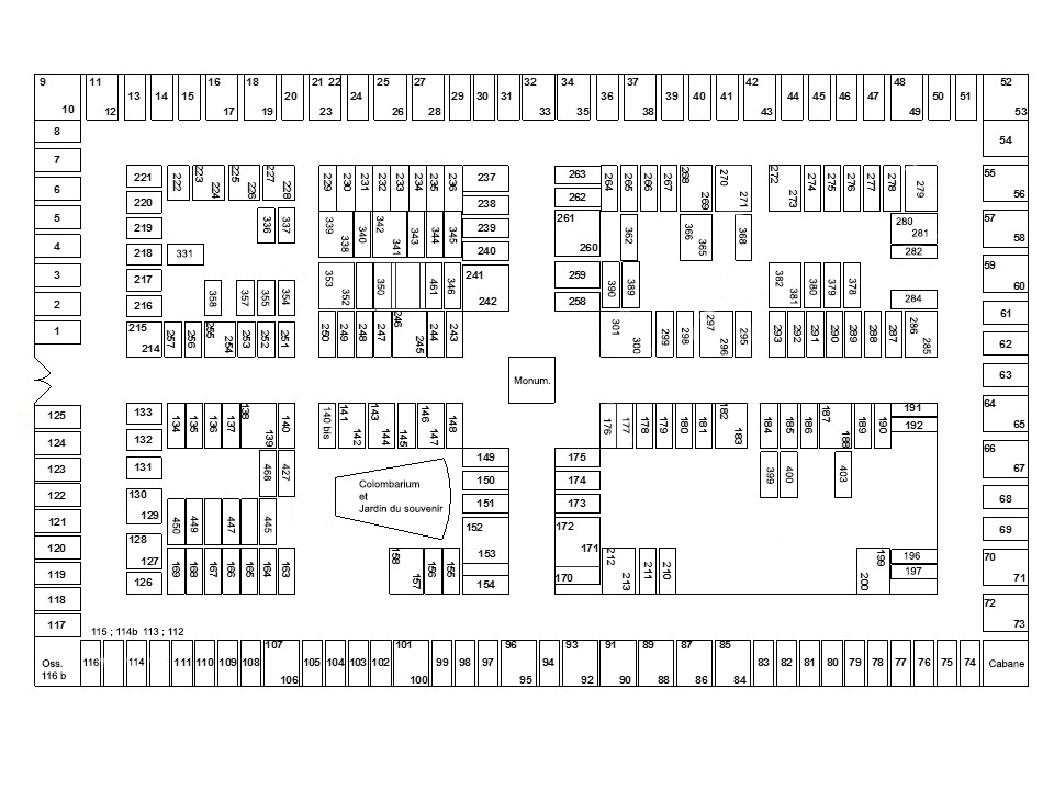 Voir ci-dessous le plan de numérotation des tombes du cimetière de Champfromier (Ain).