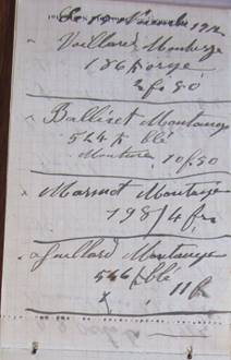 Quelques années plus tard apparaîtrons des factures de réparations et fournitures diverses, à Charlas et Brocas de Lyon, et à Hercule de Maillat, pour un total de 343,60 francs [RD14, f° 65 (16/12/1917)]. Les Frère Lacroix de Dôle reçoivent 437 francs pour [RD14, f° 68 (10/03/1918)]. Monsieur Hercule, de Maillat, reçoit 914 francs pour réparations [RD14, f° 74 (25/08/1918)]. Le conseil vote la somme de 415,55 francs pour fournitures à Charlas et Brocas de Lyon [RD14, f° 118 (11/12/1921)], la somme de 1.377,55 francs pour réparations aux Frères Lacroix [RD14, f° 119 (19/02/1922)]. En 1926, autorisation est demandée à M. le Préfet, de traiter de gré à gré avec la Maison Lacroix de Dôle, pour réparations suivant un devis de réparations se montant à 12.462 francs [RD14, f° 170 (21/03/1926)], puis à 14.648,20 francs [RD14, f° 174 (11/07/1926)], ce qui est accepté puisque l'on paye ensuite 442,68 francs d'honoraires à Moinat architecte, pour ces réparations [RD14, f° 178 (30/01/1927)]. L'architecte reçoit encore en novembre la somme de 216,48 francs d'honoraires pour travaux [RD14, f° 187 (20/11/1927)].