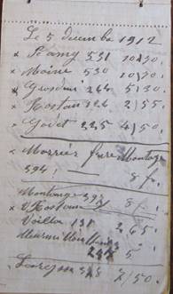 On a retrouvé dans les archives communales un petit carnet de mouture de 1912-1913 avec les noms, les villages, les quantités, le type de céréales et le prix.
