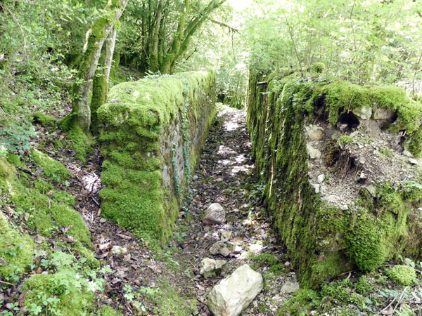 Le sentier qui, à Champfromier, dans le lit de la Volferine, va du pilier de la télémécanique à la station d'épuration, passe à proximité d'un étonnant double mur, c'est le Mur des cibles !