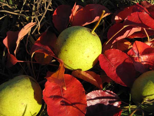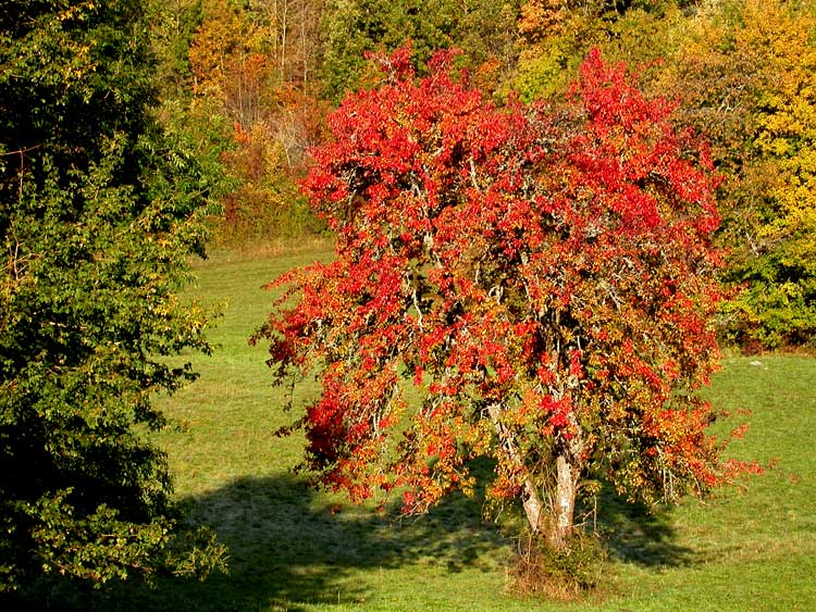 En automne, un poirier très hautes tiges aux feuilles rouge intense illumine somptueusement la sortie du Bordat. Il donnait des poires de variété dite Poires Maude (maude signifie cidre en patois savoyard), très juteuses. Il donnait... car, malheureusement, ces dernières années (2008 et 2009) sa production est devenue presque inexistante...