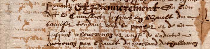 Cet acte avait été passé, reçu et signé par maître Humbert Bertrand, pour lors notaire public et juré de la cour de Nantua, le 3 mai, indiction 12 et an après à la nativité notre seigneur [commençant, en Savoie, à Noël], courant 1439.