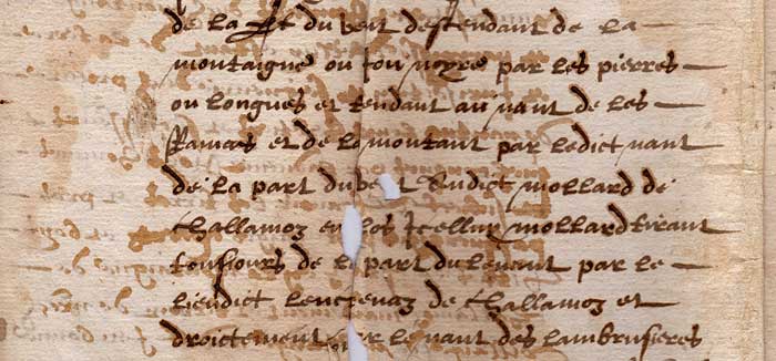 La copie du renouvellement de l'abergement de la "Montagne de Challamoz" aux Montangers en 1565, on dirait aujourd'hui des alpages de Chalam, reprend sur une dizaine de pages l'abergement original de 1439 ! En voici le résumé :