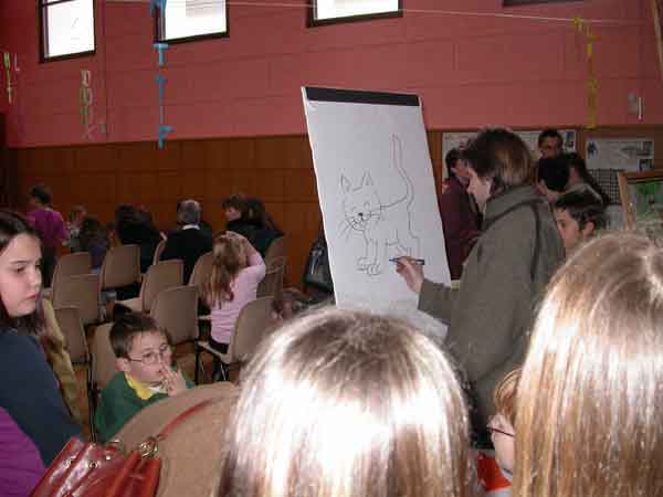 Chabert croque ses personnages devant son jeune public avant de dédicacer
