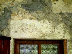 Rue de la Fruitière et à proximité, de nombreuses maisons de ce vieux quartier de Champfromier comportent des éléments architecturaux en pierre de taille ouvragée ou gravée. Au N° 731 de cette rue de la Fruitière, bien à l'abri sous un petit avant-toit, se trouve ainsi un remarquable linteau de porte-fenêtre (qui ne figure pas au pré-inventaire de cette commune). A sa droite du même mur pignon se trouve également un bel encadrement de petite baie (linteau en double accolade, de réemploi).