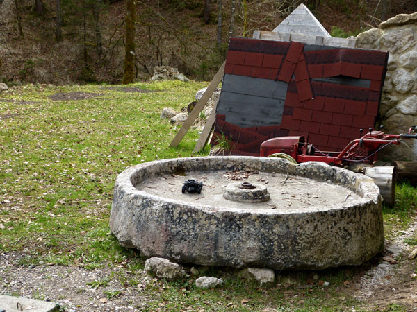 Si le moulin a totalement disparu depuis 1881, on trouve encore facilement la trace d'un ancien canal de dérivation des eaux depuis le bas de la cascade, rive gauche, sans compter une benne métallique, un trou à l'emplacement de l'arbre de la roue dans le mur du fond du vieux bâtiment et une très belle conche !