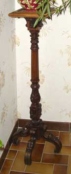 ainsi que, une jolie table aux pieds galbés réunis en un imposant motif central escamotable (voir la photo sur plaque ci-dessus) et, non présenté dans ce site, une petite table ronde, un lutrin à Giron, une bibliothèque, une autre sellette, etc.