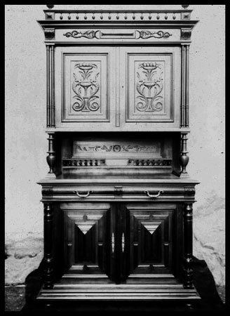 En tant qu'ancien professionnel du cinéma, il n'est pas étonnant de retrouver dans les plaques photos personnelles de Marius Chapuis diverses plaques de grand format (9 x 13 cm) de meubles qui furent certainement quelques-unes de ses plus belles œuvres : buffet, entrée de porte, table et comode. Ces plaques inédites sont malheureusement conservées sans aucune annotation.