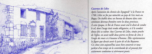 A Lélex, la maison de gauche, en ruine, a été totalement reconstruite. Le propriétaire a toutefois tenu à préserver la pierre à sel qui se trouvait à gauche, et qui a été replacée à droite, après avoir été tronçonnée pour ne pas être plus profonde que l'épaisseur du mur.