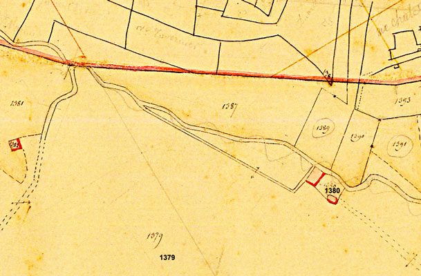 En 1833, la partie principale de la carrière se situe très largement sur la commune de Montanges. Les parcelles A1375 à 1382 appartiennent alors toutes à Louis Joseph Stanislas Marinet, avocat à Ballon. Notons en particulier qu'il possèce la maison et bâtiment A1376 (aux Quarts, au bas de l'extrait de plan ci-dessus) de 500 m², et, au lieu-dit La Platrière, la maison A 1380 de 430 m² à 5 ouvertures fiscales (doublée d'une plus petite sur le plan), dite "Maison d'habitation ; fourneau ; fabrique de plâtre".