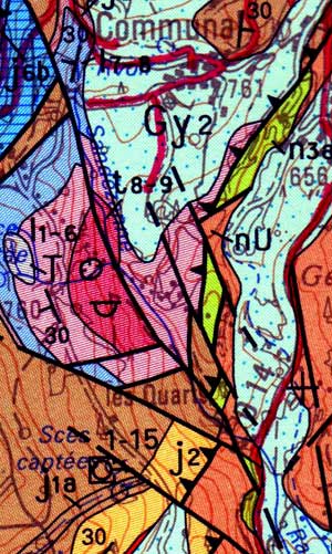 Précisons que le gypse, roche de qualité voisinant le calcaire à plâtre, se trouve géologiquement à l'étage du Trias. C'est la couche la plus ancienne à affleurer dans les environs. Il est attesté que ce filon était déjà connu aux temps de la Révolution, et qu'il était seulement accessible depuis Champfromier, mais qu'il était aussi connu des habitants de Montanges... Ceux-ci sont furent alors implicitement accusés par les habitants de Champfromier d'extraction sauvage de plâtre, sans profit pour les champfromérands, qui n'ont pas d'autres ressources...