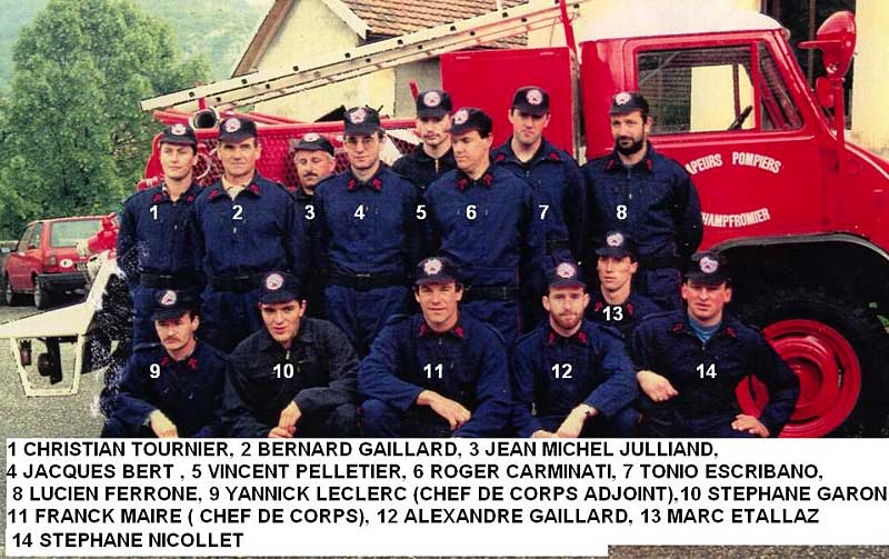 Ci-dessous, le Corps des pompiers de Champfromier, en 1994. Chef de corps : Franck Maire, adjoint : Yannick Leclerc.