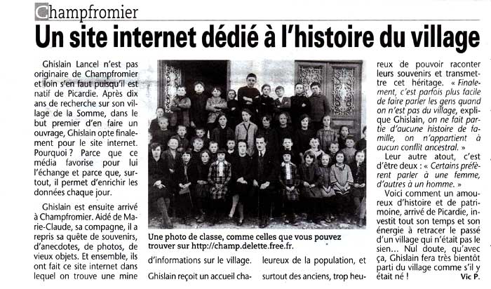 Lors d'un passage à Bellegarde afin de consulter les archives de la Tribune, Vic Polsinelli, journaliste, en a profité pour réaliser une petite interview. L'article est paru dans le numéro 42 du jeudi 30 octobre 2008 (page 11).