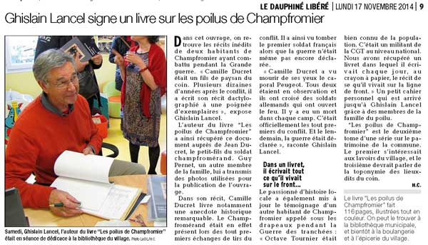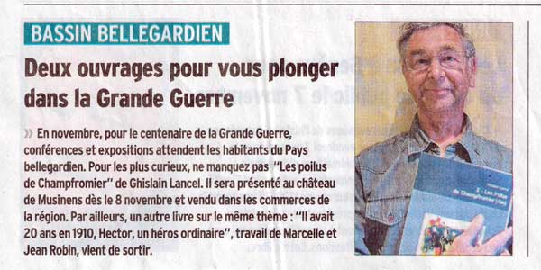 Avec trois autres invités de l'association Renaissance du Château de Musinens (à Bellegarde-sur-Valserine), Ghislain Lancel a répondu aux questions concernant l'exposition Guerre de 14-18, à travers l'ouvrage PHC des "Poilus de Champfromier" (Luce et Jean Robin présentant quant à eux leur ouvrage, "Il avait 20 ans en 1910, Hector, un héros ordinaire").