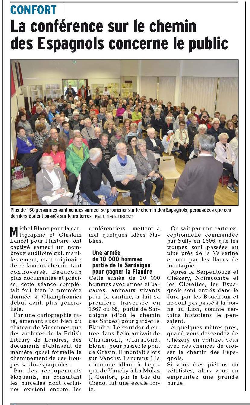 DL du 4 mai 2016 (article après conférence de Ghislain Lancel)
