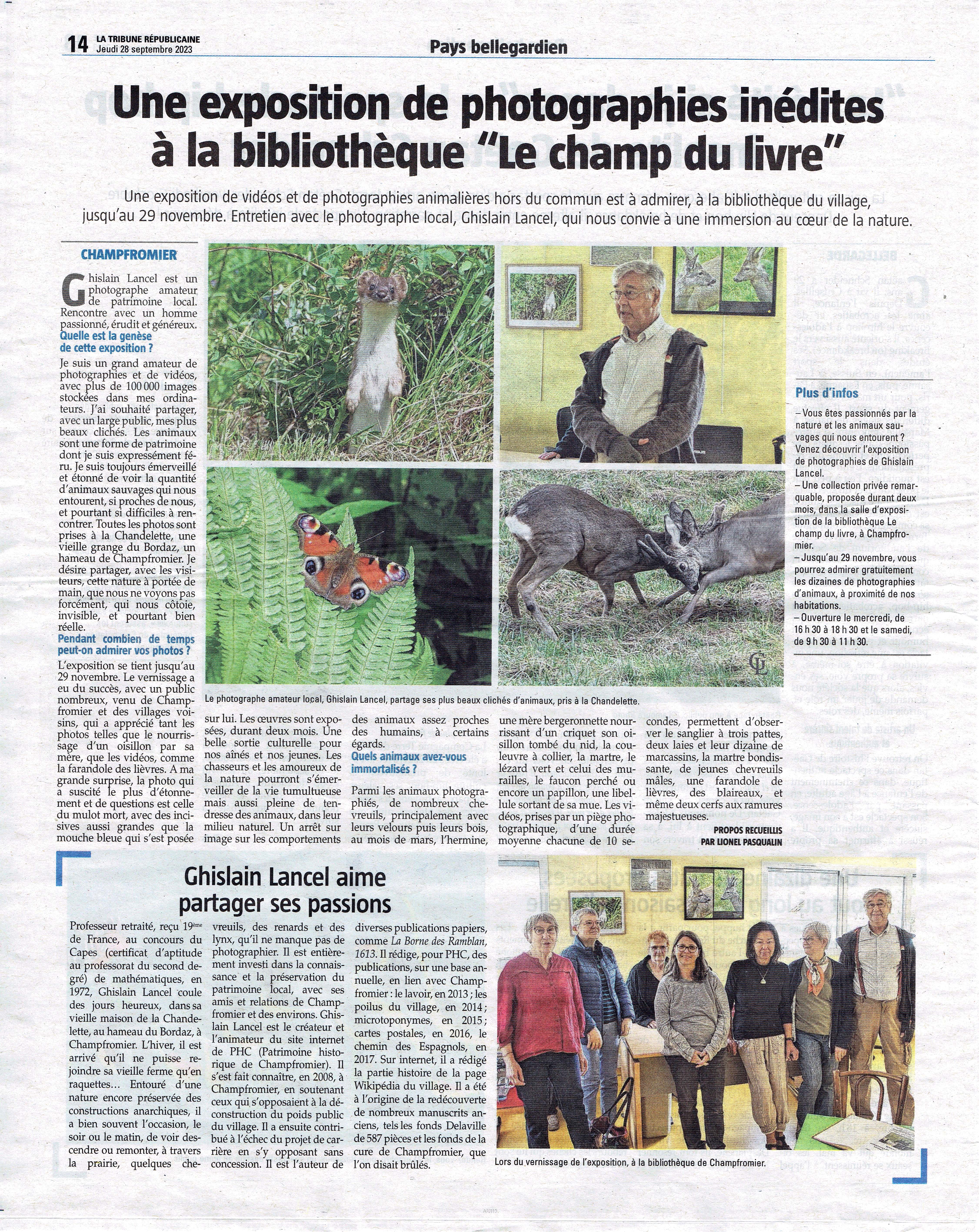 Rappelons que cette exposition est visible à la bibliothèque de Champfromier, tous les mercredis de 16h30 à 18h30 et les samedis de 9h30 à 11h30, du 23 septembre au 29 novembre 2023.