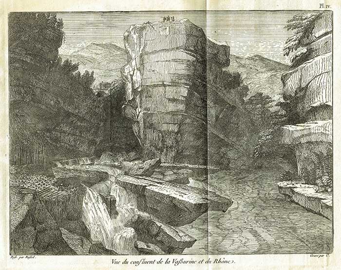 Voici une nouvelle planche extraite de Voyage pittoresque et navigation exécutée sur une partie du Rhône réputée non navigable. Moyens de rendre ce trajet utile au commerce, publié par T. C. G. Boissel, en l’an III de la république (1794/95).