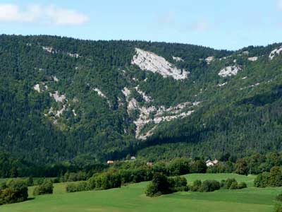 La Trouillette est une exsurgence spectaculaire de Champfromier, souvent à sec, et parfois déversant ses eaux à grands flots pour alimenter la Volferine.