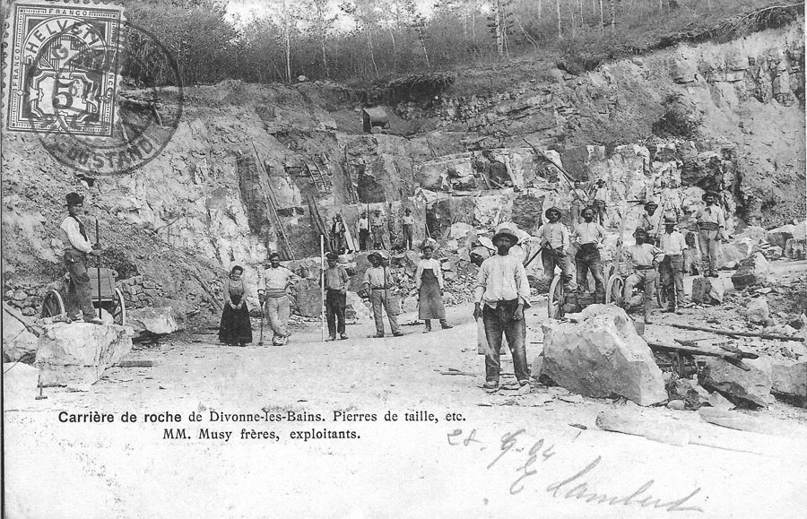 On connaît une vue de la carrière du Mont-Mussy plus ancienne que celle de la photo privée de 1907. Elle est représentée avec son personnel sur une carte postale, où l'on ne dénombre encore que 17 personnes (dont une femme).