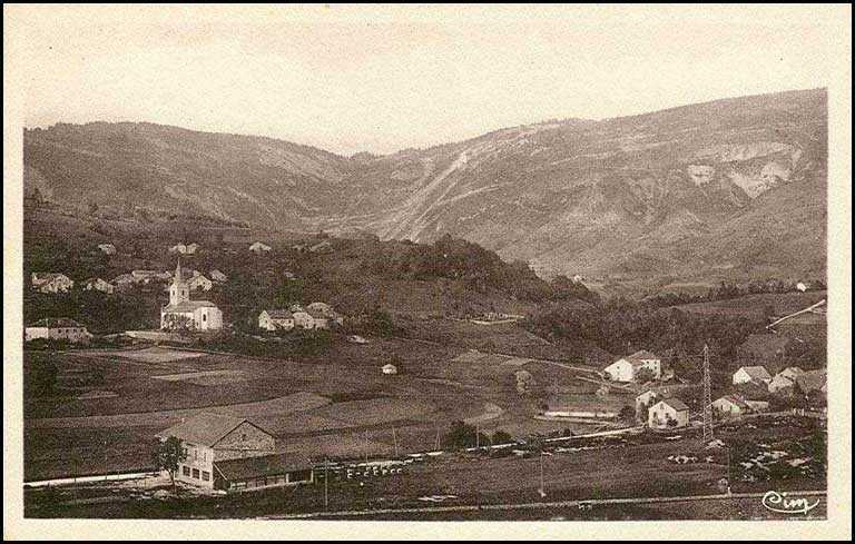 | Commentaires : | Au bas à gauche, une maison du quartier de Champfromier dit La Caserne, avec les ruches de Marie-Louise Deyriat. Tout en bas la ligne de la Voie du Tram. Voir le verso : CP 74. |