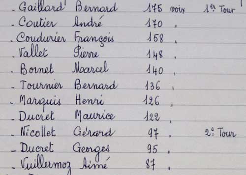 Les 4 nouveaux sont : Ducret Jean-Louis, Evrard Jean, Mme Gaillard Rose, Garon-Guinaud Daniel, élus à la place de Bornet Marcel [7460], Ducret-Lyset Maurice [7486], Marquis Henri [7577] et Vallet Pierre [7650].