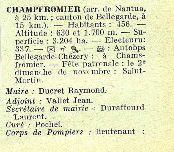 En 1959, est-il vrai que la Montagne de Champfromier est réputée pour sa chasse aux écureuils ? Et que ce village est bon pour vous, si vous êtes déficient ?