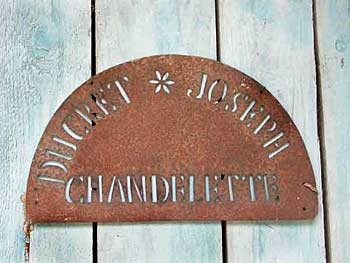 Deux réalisations à mettre au nom de Joseph Ducret, nous sont parvenues. D’une part une jolie enseigne dont on ne devine pas l’utilité en tôle perforée : « DUCRET * JOSEPH – CHANDELETTE », et surtout l’agrandissement de la maison à sa taille actuelle. La maison de la parcelle D 1805 subit une augmentation de construction relevée dans la matrice des modifications (Archives) pour 1882, 1883 ou 1891, visible sur le plan des modifications de 1965 (Archives) et qui correspond à la cuisine actuelle au mur recouvert de tavaillons.