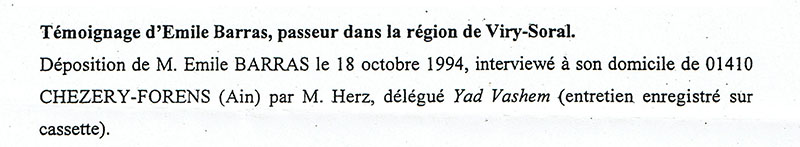 Emile Barras, figure de Chézery (père de Jean, vétérinaire), fut témoin et passeur de juifs à Viry (74580), village de Haute-Savoie situé entre Valleiry et St-Julien-en Genevois, à la frontière Suisse avec Soral, entre 1942 et 1944. Son témoignage a été recueilli et enregistré sur cassette en 1994 par M. Herz, délégué Yad Vashem. Il est publié dans Le Bulletin de l'histoire enseignée, Groupe d'histoire et d'éducation citoyenne du Cycle d'orientation de Genève, N° 16, automne-hiver 2006-2007.