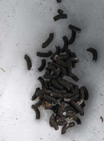 Réponse A : Des crottes de biques (ou d'un parapentiste, mort de trouille... Douteux !?**!!!) ; Réponse B : Des crottes de Grand-Tétras !! ; Réponse C : Des chatons de noisetier...