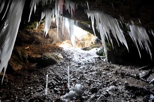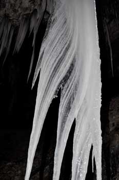 Dentelles, draperies éthérées, décors féériques, impressionnantes stalactites de glace prenant chaque jour et chaque nuit une nuance de cristal différente, tel est le spectacle que le froid sibérien (-10° à -16°) qui régna sur notre pays durant deux semaines (première quinzaine de février 2012) nous proposa à l'entrée des grottes de Champfromier...