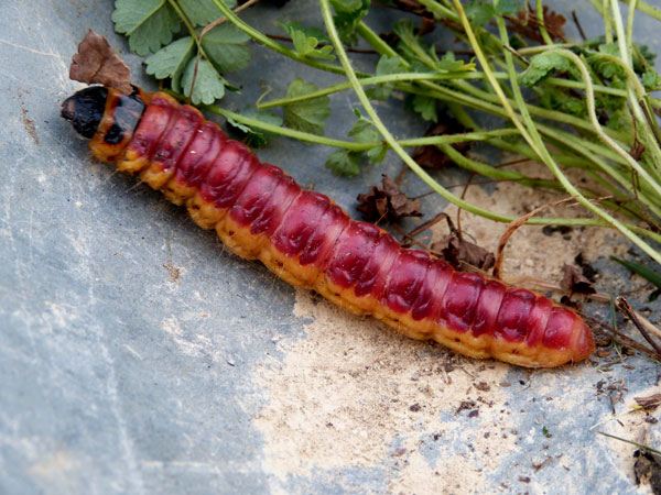 C) C'est une chenille de Cossus gâte-bois (Cossus cossus). Elle se développe sous l'écorce de certains arbres (fruitiers et autres), y creuse des galeries et y hiberne deux hivers. Elle se transforme ensuite en un grand papillon nocturne de 7 à 8 cm d'envergure (de couleur grise se confondant avec l'écorce des arbres où il séjourne le jour).