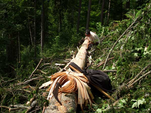 En complément à la réponse à la devinette 41, il fallait choisir la réponse A, des bûcherons spécialisés dits "sangliers" qui taillent des lanières de bois (des sangles, d'où leur nom), utilisées pour cercler les fromages Mont d'Or et leur donner une saveur inimitable ! Cette sangle est la bande brune en épicéa qui parfume fromage et qui reste collée dans la boite lorsque le fromage est mangé ! Voici quelques autres photos prises celles-ci, non à Champfromier, mais à Chapelle des Bois dans le Doubs.