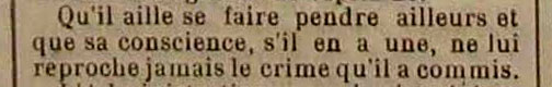 Qu'il aille se faire pendre ailleurs et que sa conscience, s'il en a une, ne lui reproche jamais le crime qu'il a commis.