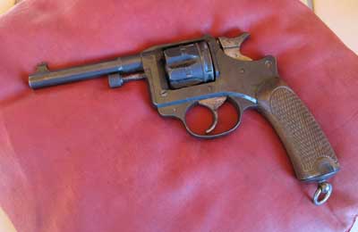 Cette arme n'avait certainement jamais tué personne, contrairement au révolver qui fut certainement emporté avec lui lors de sa mutation par le lieutenant Fontaine responsable de la mort du contrebandier Gustave Vénière en 1909. A remarquer le petit anneau qui devait servir à la fixation d'une bride rattachant le révolver à la ceinture du douanier.