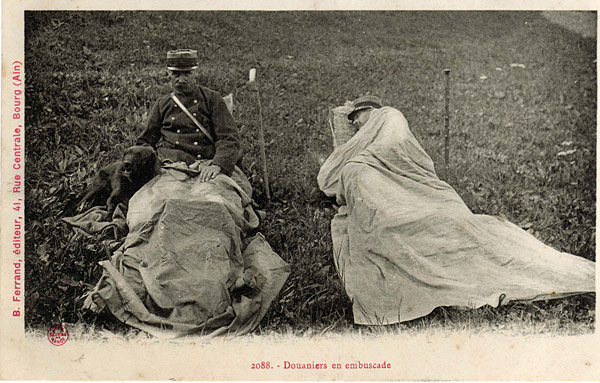 On pourra trouver de nombreuses autres cartes postales montrant les douaniers, en embuscade..., et parfois des contrebandiers (Voir L'Almanach Savoyard, 2008 et 2009, etc.)