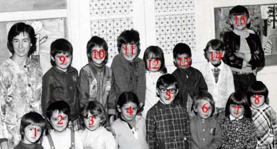 1) Alexandre GAILLARD ; 2) Marie-Jo COSTA (divorcée de Marin) ; 3) ?? ; 4) ? ; 5) Jean-Noël MARTINEZ ; 6) Stéphane NICOLLET ; 7) Sandra NICOLLET ; 8) Nathalie Todeschini ; 9) Antonio (Tonio) ESCRIBANO ; 10) Eric Roncin (fils de l'institutrice) ; 11) Franck DUCRET (sinon Christian TOURNIER) ; 12) Marie-Jo MARTINEZ ; 13) Emmanuel (Manuel) OVAL-MARTIN ; 14) Véronique TODESCHINI (divorcée de Bertrand) ; 15) ??.