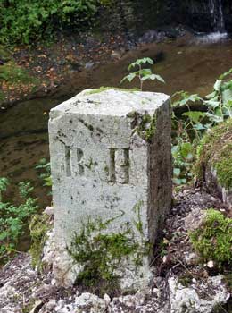 En contrebas du Pont d'Enfer, rive gauche de la Volferine, une borne vient de retrouver sa place.