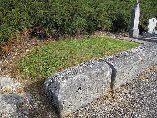 Le long de la première partie du mur ouest du cimetière de Champfromier (n° 21-23), il est une tombe étonnante, recouverte d'un gazon sans aucune plaque ni inscription. Tout juste, étant très attentif, remarque-t-on une étoile sur chacun des chanfreins des petits côtés extérieurs de trois blocs de béton qui séparent l'espace funéraire de l'allée. C'est la tombe des penseurs libres, des oncles d'Eloi Ducrest, dit la rumeur (et pour une fois c'est vrai). Ils sont trois, avec sept femmes ! Cette fois la rumeur en est bien une, exagérée, déformée : trois femmes suffiront, de même qu'un ou deux frères...