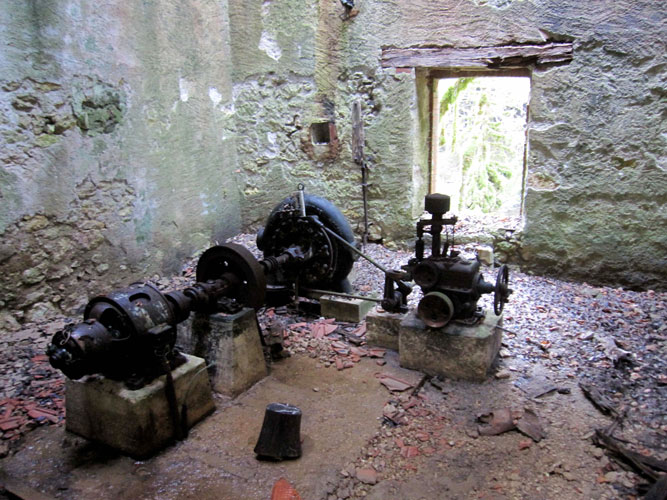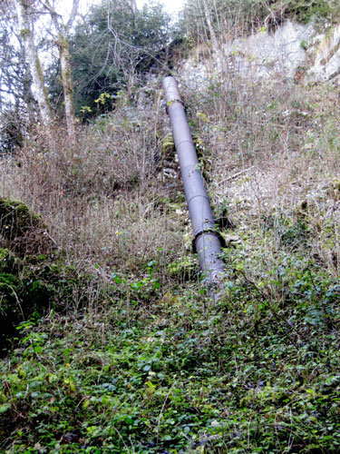 Sur le schéma ci-dessous, on peut voir en haut l’ancien moulin communal (à gauche), avec le pont du tram et ses arches. Le stand de tir (à gauche) a été détruit au profit du bâtiment technique communal actuel (mais la tranchée de tir, à droite, subsiste encore). Les restes du pilier de la télémécanique, ainsi que le "Pont des chèvres" restaurés, sont encore visibles. Le bâtiment et des éléments de l'ancienne turbine sont en ruine.