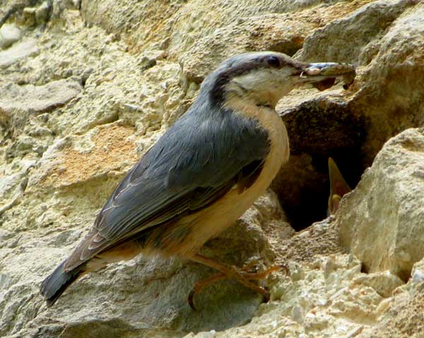 La sitelle est connue pour appliquer de la boue séchée pour réduire l'entrée de son nid (ce qui lui a valu le nom de torchepot). Ce n'est pas toujours le cas, témoin cette sitelle (ci-dessous) qui durant quinze jours frappa du bec avec insistance dans un épais mur de la Chandelette, jusqu'à ce qu'une entrée soit suffisante...