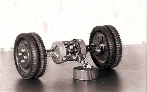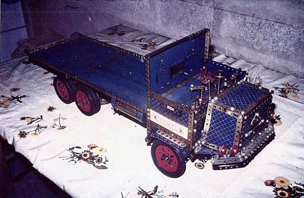 Jean-paul réalisa ce camion vers 1954. Il mesurait 85 cm de long pour 32 cm de hauteur, et était équipé de 6 roues motrices, 14 vitesses avant et 4 vitesses arrière ! Il était équipé d’un treuil, du type tracteur fardier TT. Il pouvait fonctionner de deux manières, soit avec moteur électrique, soit avec un moteur d’avion à auto-allumage (Charles Todeschini et Jean-Baptiste Rota en ont de bons souvenirs !) Pour franchir un arbre un travers de la route il avait trois possibilités : si l’arbre était libre, il le poussait (et le dégageait) avec les roues avant bloquées, celles de derrière poussant le véhicule ; si l’arbre était tenu, le camion passait dessus. Si l’arbre était glissant il était "avalé" avec un système de diviseur de puissance.